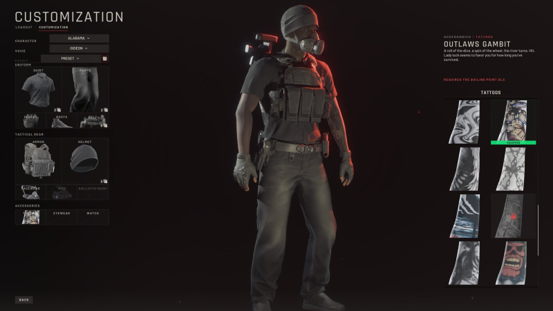 Помимо предметов снаряжения, расширение включает в себя несколько татуировок косметика, которую можно применять операторам.