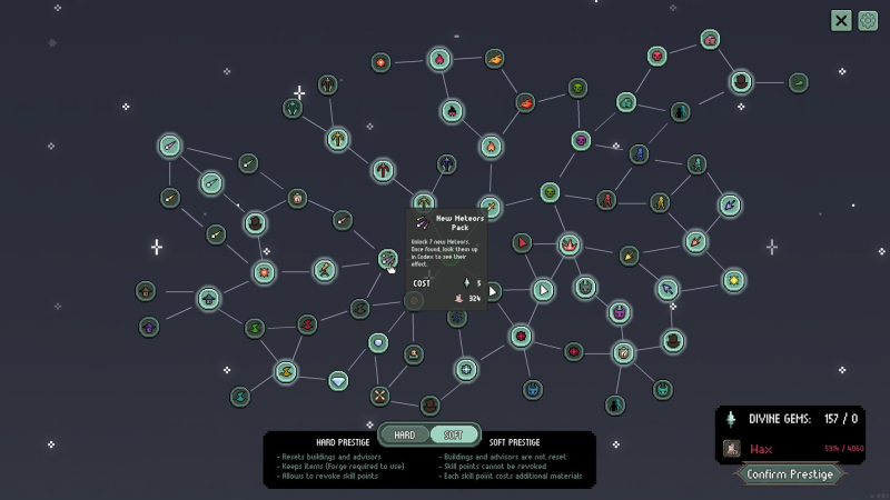 Есть два типа престижа. Мягкий престиж сбрасывает часть вашего прогресса, но для этого требуются специальные материалы, такие как крысиные хвосты, воск или кристаллы. Жесткий престиж сбрасывает больше, но стоит только божественных камней.