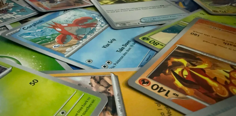 Покемон торговые карты, разбросанные на столе. Новый лимит покупок Walmart на пять наименований направлен на то, чтобы предоставить большему количеству коллекционеров доступ к карточкам. (Фото с сайта